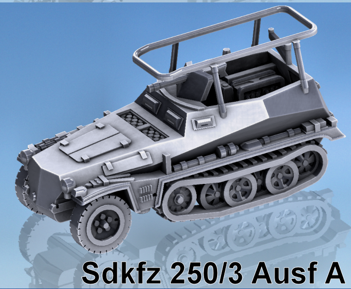 Recibirás 1 miniatura de vehículo de mando Sdkfz 250/A3 de la escala seleccionada. El precio es por miniatura.