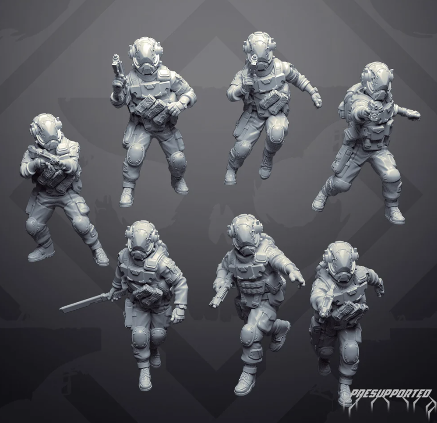Up for sale is a squad of Frontier Freelancersminiatures. This is one of the squads for the Game Arsenal. You can check out the rules here: https://www.electi-studio.com/blastervol07