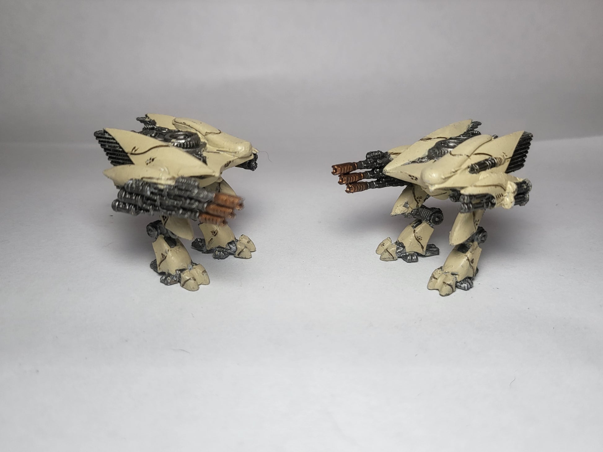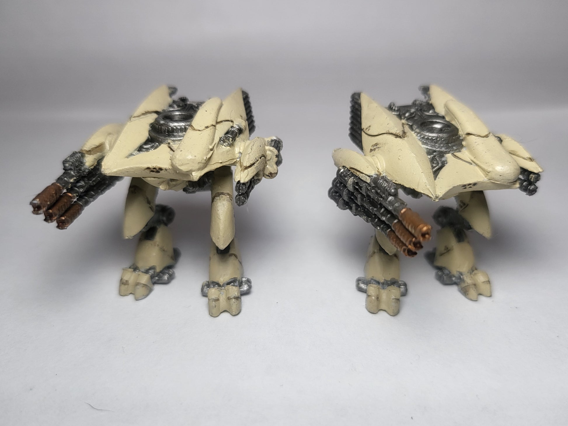 Listing is for 2 painted PHR Menchit walker miniatures. They are equipped with Stryx autocannons and triple miniguns. Models are from TTCombat, never used. Painted with the standard faction scheme.